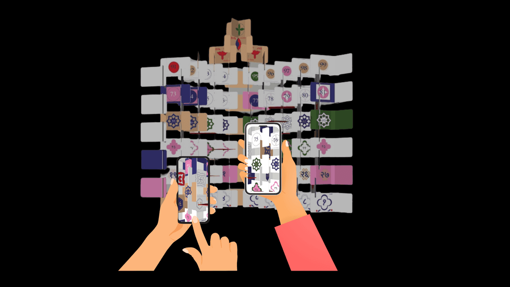 To stay true to sustainable materials and local production, the installation was crafted from eco boards printed by local vendors. The boards were lightweight, fire-resistant, and recyclable. Each tile carried motifs and colours inspired by different regions, reflecting the game’s visual evolution across a hundred years, while the structure stood assembled without adhesives slotted into each other through 3mm slits. Keeping it simple, tactile and reusable.